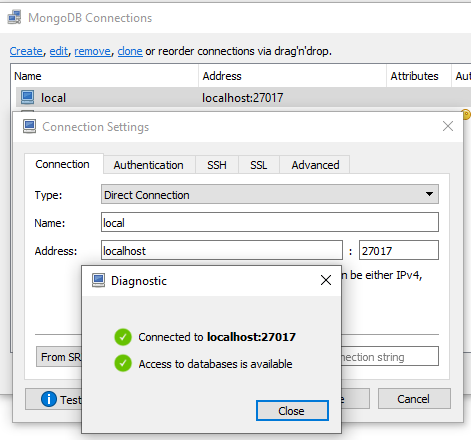 If you don’t see data in there, try verifying your connection to Mongo in the ConnectionString.config. Although, I would start by checking I have connection to the Mongo server in the first place. Robo3T can also give you a hand if you have installed it: