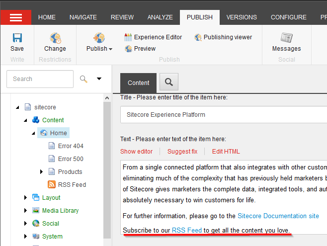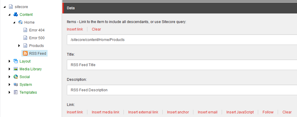 So, you want to create a RSS feed in Sitecore. Please just take a look at this post as background or at least the “Important Notes” section. In the previous post I talked about the different RSS feed you are able to create within Sitecore and I just want to make sure you are in the correct place and this is what you need before discuss the implementation details.